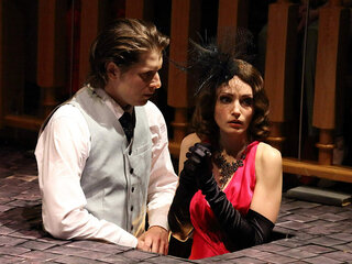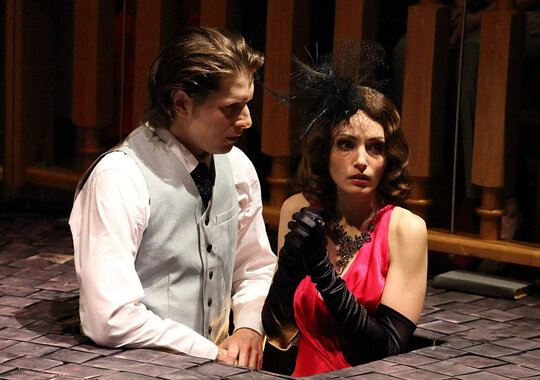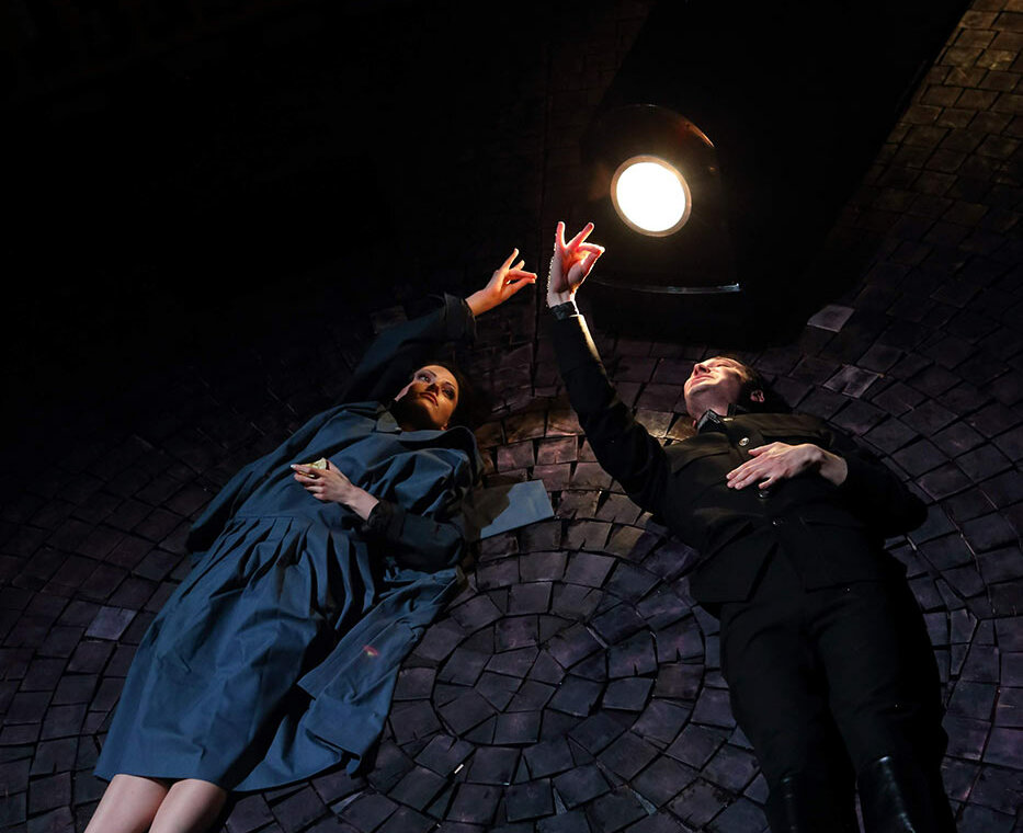«Пьеса „Безымянная звезда“ написана в 1942 году Иосифом Гехтером, носившим желтую звезду и жившим в гетто. Это грустная сказка для взрослых о вспыхнувшей любви и о ее невозможности. Но печаль пьесы не хотелось бы окрашивать в мелодраматические тона. Мы стараемся в этой истории вычитать притчу о посвященных, наделенных знанием о неочевидных вещах. В этот круг приобщенных допущена и Мона, не подозревающая о невидимых внешнему зрению тайнах бытия. Посвящение приносит ей радости встреч с сокрытым, влюбленность, но и последующий трагический выбор. О двух возможных путях — горизонтальном и вертикальном — размышление румынского автора, писавшего под псевдонимом Михай Себастиан».