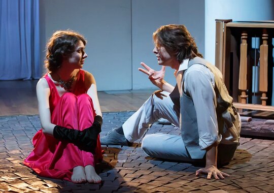 «Пьеса „Безымянная звезда“ написана в 1942 году Иосифом Гехтером, носившим желтую звезду и жившим в гетто. Это грустная сказка для взрослых о вспыхнувшей любви и о ее невозможности. Но печаль пьесы не хотелось бы окрашивать в мелодраматические тона. Мы стараемся в этой истории вычитать притчу о посвященных, наделенных знанием о неочевидных вещах. В этот круг приобщенных допущена и Мона, не подозревающая о невидимых внешнему зрению тайнах бытия. Посвящение приносит ей радости встреч с сокрытым, влюбленность, но и последующий трагический выбор. О двух возможных путях — горизонтальном и вертикальном — размышление румынского автора, писавшего под псевдонимом Михай Себастиан».