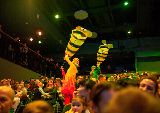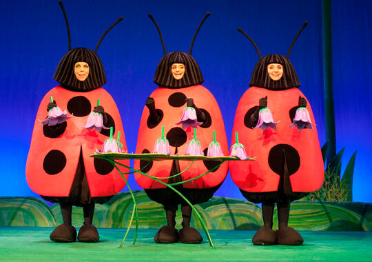 В ней множество перевоплощений. Букашки в спектакле трудолюбивые и креативные. Зрители узнают, в каком стиле танцуют светлячки, какой любимый музыкальный инструмент у божьих коровок, на каком языке разговаривают муравьи, что рифмуют в песнях стрекозы, как далеко способны прыгать кузнечики и кому посвящает танец гусеница. И все это – под вокальное музыкальное сопровождение, в том числе и в стиле битбокс!