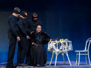 Спектакль Светланы Прохоровой сочинен как деликатный ответ театра великим текстам Бунина. Здесь слышно каждое слово, видим каждый жест, прожито каждое мгновение. Театральной рамкой к историям о взрослении, через которое с разными потерями и приобретениями проходят герои Бунина, становится игра вокруг сцены-помоста. Между эпизодами актеры усаживаются на скамейку, переодеваются и на время превращаются в зрителей, внимательно наблюдающих за игрой. Ровно так же чувствуют себя и читатели бунинских новелл — волнуясь и в то же время отстраненно наблюдая за драмами других, как будто далеких по времени, но таких близких в своем сердцебиении.