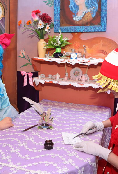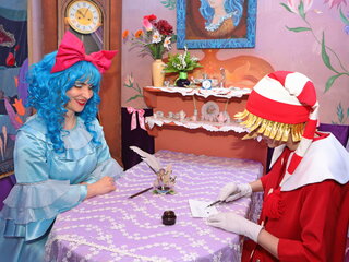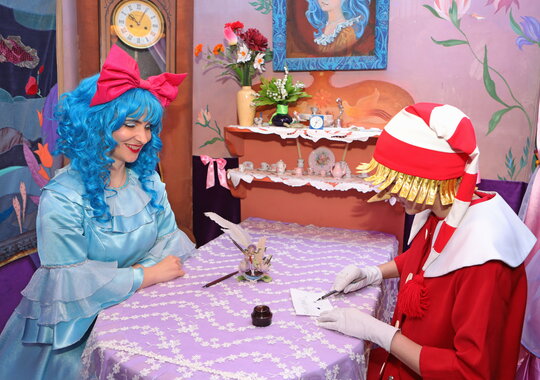 Побывают в домике Мальвины, чулане, каморке папы Карло, найдут золотой ключик в пруду и отправятся в волшебный театр. А там всех ждет чудесное превращение в героев сказки А. Н. Толстого «Золотой ключик или приключения Буратино». Для всех участников программы Мальвина подготовила приятный сувенир.