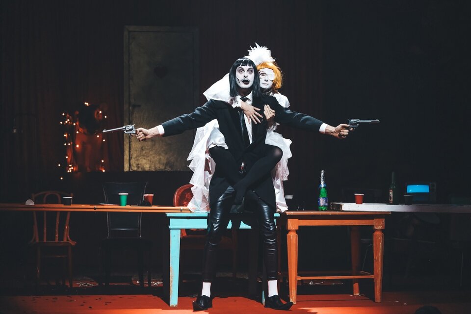«Неважно, когда ты умрешь. Важно, что это навсегда» — вызов обществу и одновременно легкая юмористическая комедия не просто ломает четвертую стену, а прямо отрицает ее существование: «Зрители не должны чувствовать себя лишними на этом празднике жизни, театр не имеет право отгораживаться от зрителя и делать вид, что зрителя нет» — Юрий Муравицкий. Поэтому каждый зритель — полноценный гость на сумасшедших свадьбах, участник клоунских перестрелок и сподвижник рискованного побега влюбленных.