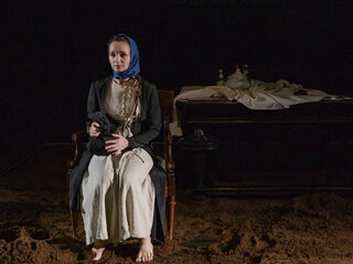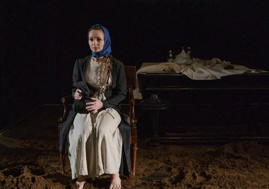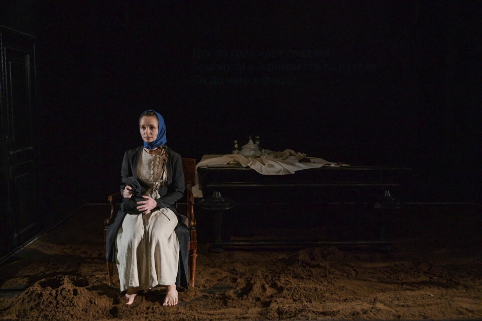 Спектакль «Чрево» вышел из лаборатории, посвященной авторам первой половины XX века. Это ранняя проза Евгения Замятина — удивительного стилиста, прозаика, выросшего в среде Серебряного века, а писавшего в основном в эпоху становления большевистского государства. Рассказ 1915 года — первая попытка подобраться к большой повести «Наводнение», которая в последние годы активно ставится в российском театре.