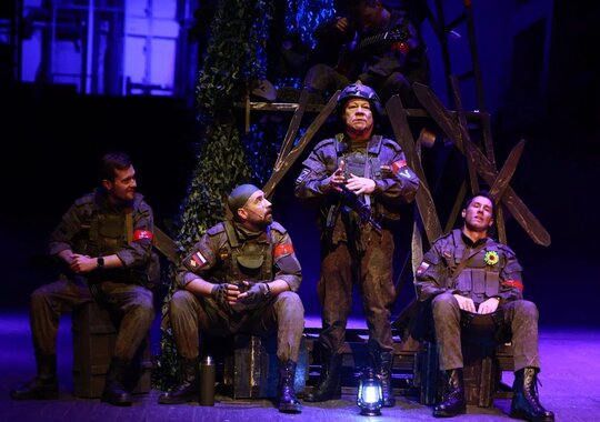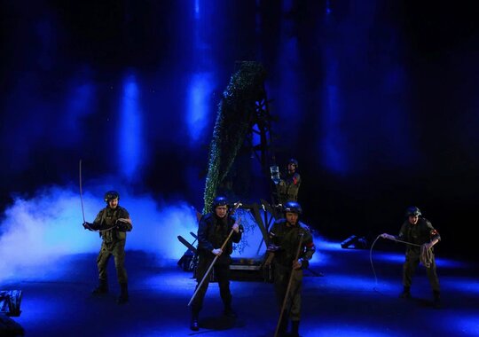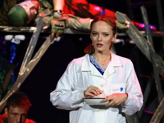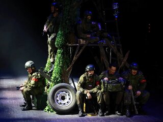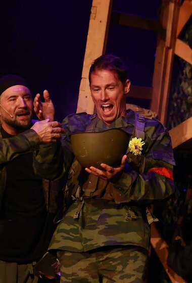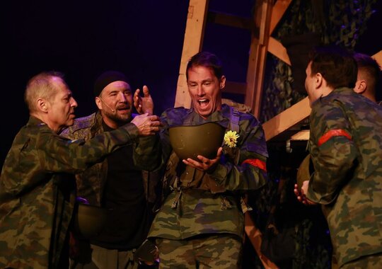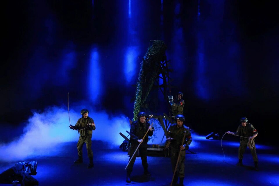 В основе спектакля «Данькина каска» — эскиз режиссера Дианы Бориной, признанный лучшим в рамках режиссерской лаборатории «Век Астафьева».