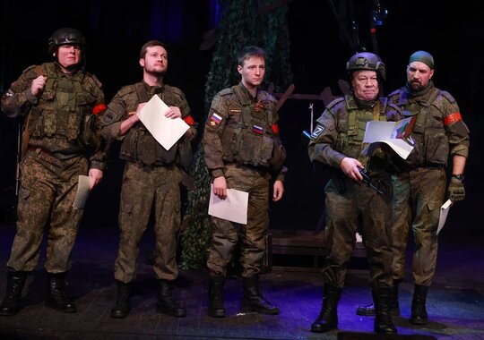«Василий Тёркин был среди бойцов Великой Отечественной, а Гимнастеркин — сейчас. Мы решили соединить известный текст Александра Твардовского с новым текстом драматурга Егора Черлака, который сам воевал в составе ополчения, тем самым подчеркнув мысль о мостике от Великой Отечественной войны к спецоперации. Пьеса про братство, товарищество и у нас с артистами получилось такое товарищество, объединение: Тимур и Юта пишут музыку, ребята приносят свои инструменты — гитары, губную гармошку. С ребятами мы ставим две задачи: „чтобы на войне живущим людям было б может быть теплей“ и вторая, чтобы бойцы понимали, что все что, они делают не зря», — рассказала Диана Борина о предстоящем спектакле.