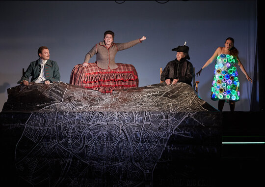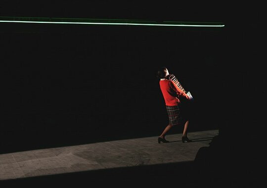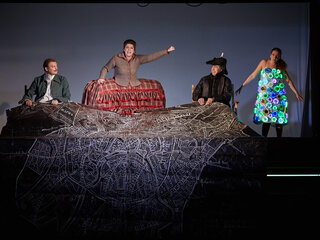 Чтобы зрители могли оценить обновленное пространство Сцены на Сретенке (архитектор Сергей Куцевалов), было решено провести их по всем помещениям сцены: буфету, гардеробу, фойе. Также действие спектакля происходит на лестницах, на складе и в других служебных помещениях.