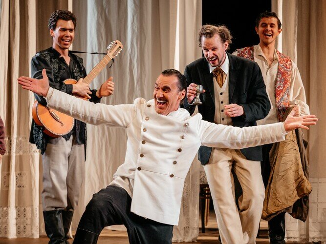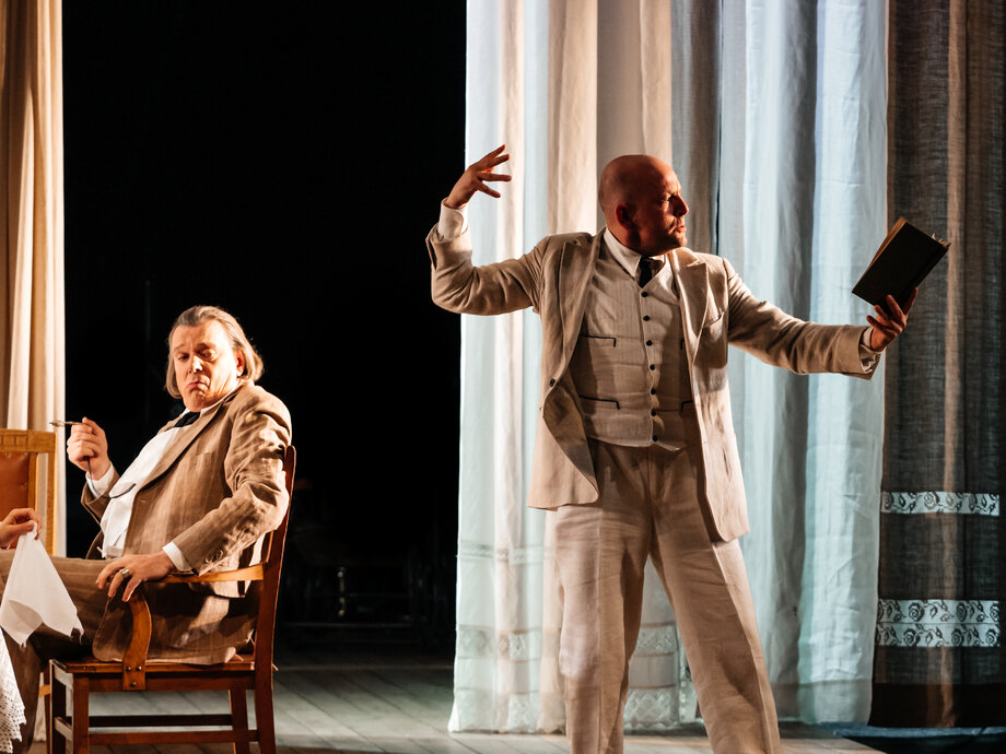 В составе исполнителей возможны изменения. Старинная усадьба с деревянным столом на большой террасе. Здесь часто собирается дружная семья за чаем и светской беседой. Воображение рисует зрителю старинную усадьбу, утопающую в зелени цветущего сада. Льняные занавески террасы колышет легкий ветерок, белоснежные костюмы героев отсылают к летнему зною. Стол накрыт, гости собрались. Шутки, смех, перебор гитарных струн… Но глубоко в душе у каждого персонажа спрятаны страхи и эмоции. И вот, в один момент, эти сокровенные потаенные чувства выходят наружу: нарочито-светские беседы превращаются в покаяния, а сдержанный смех в — крик отчаяния. Пасторально-безмятежный дом становится ареной, где кипят страсти и близкие люди выясняют отношения.