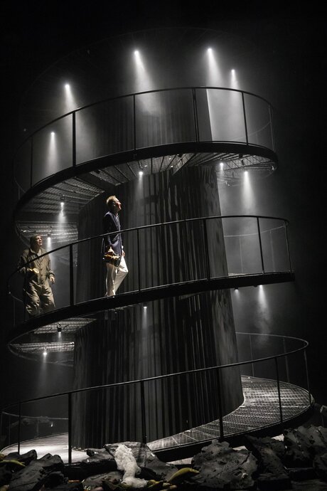 На сцене высококлассное изобретение — вращающаяся железная башня, на которой происходит всё действие. В искрометных диалогах с Дон Жуаном Сганарель неустанно предостерегает господина, «сластолюбца и всесветного жениха», от новых пороков. В неистовом музыкальном сопровождении и световом сценическом решении Дон Жуан бросает небесам вызов за вызовом, неутомимо исследуя пределы дозволенного. Здесь, на башне, возникает и ось любви, и линия жизни, и вертикаль смерти, здесь классика идет в ногу со временем.
