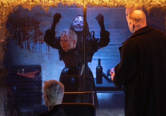 В спектакле активно используются современные технологии, но не смотря на это сценография сдержана и наполнена выразительными готическими образами. Главный акцент в решении постановки смещен на уникальный актерский ансамбль, в котором удалось собрать ведущих артистов столичных театров, благодаря независимому статусу проекта.