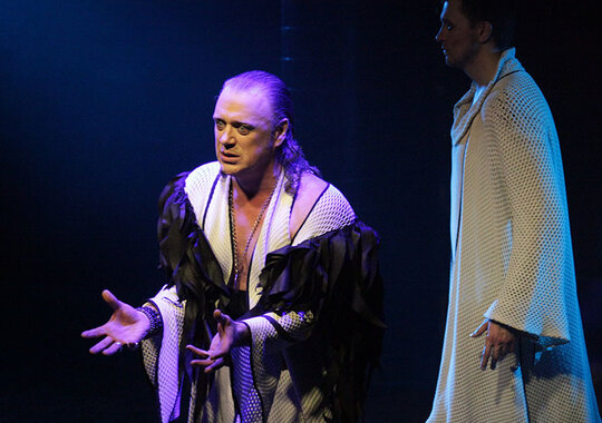 Новая трактовка легендарного спектакля, которому рукоплескал Эдинбургский фестиваль. Спектакль обреченный быть знаковым для театра. Магический танец на грани фола, между «быть или не быть», между божественным провидением и человеческой волей. Режиссер и актеры не гонятся за модой, но современность самовольно врывается в спектакль, преломляя образы в свете тех жестких истин, свидетелями которых становятся зрители XXI века.