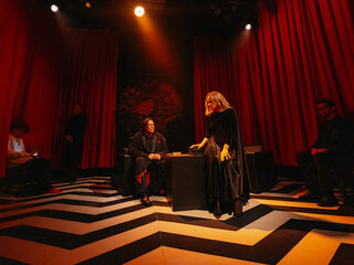 «Гуттаперчевый человек» — это спектакль о людях, утративших способность притворяться: они не ждут спасения, открыто несут свои раны и мало говорят. Но каждое их слово — как шаг по камню: твёрдо, осторожно, без права на ложь. В мире, где боль становится постоянной спутницей, каждый день превращается в испытание человеческой выносливости. Герои продолжают путь, потому что остановка для них страшнее движения. Спектакль напоминает, что боль — не враг, она — говорящая с нами глухо и требовательно — память о том, что мы живы. И если человек выдерживает этот разговор, он становится крепче, чем был», — Игорь Миркурбанов.