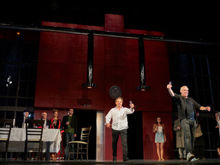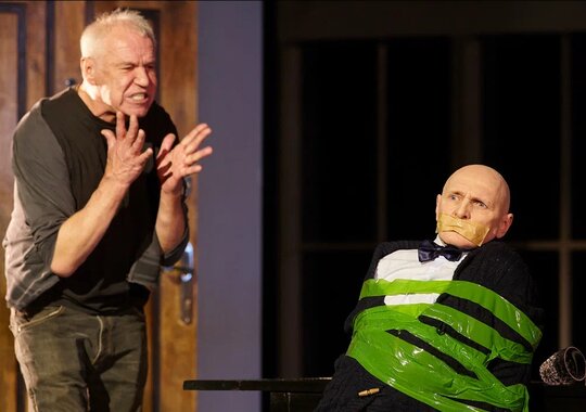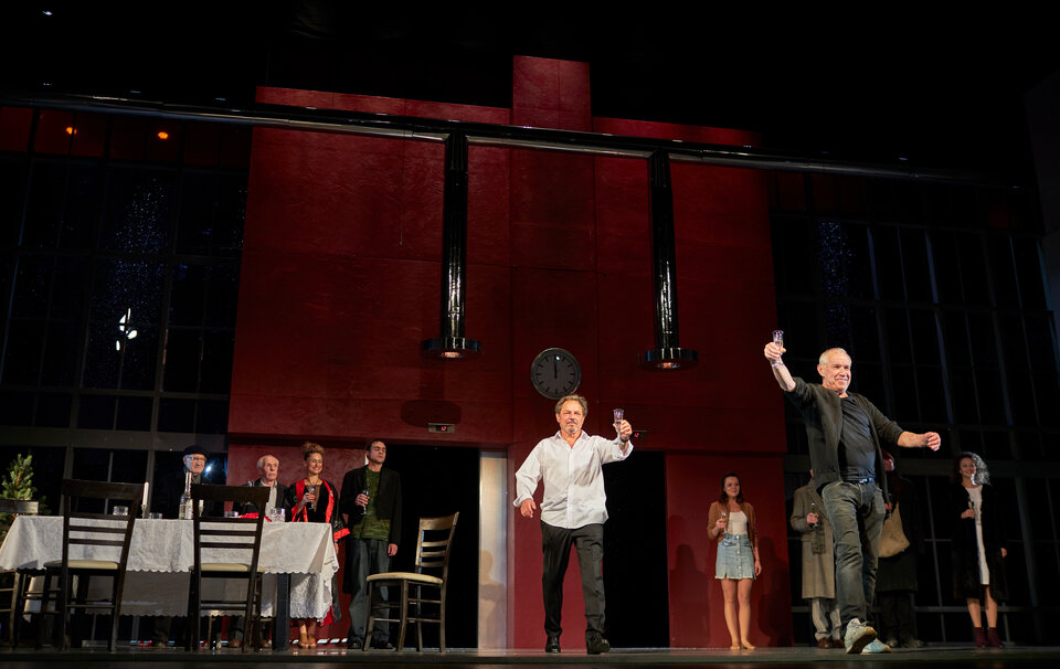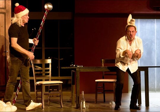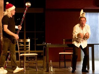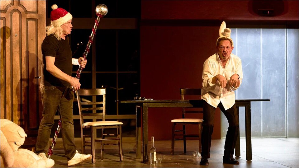 Сергей Гармаш и Игорь Скляр в «новогодней», но абсолютно внесезонной истории случайной встречи двух однокурсников на лестничной площадке, в последний час уходящего года. Один – герой глянца, успешный шоумен. Другой даже за униформой артиста-неудачника — костюмом Деда Мороза — не в состоянии скрыть свою потрепанность жизнью. Один — надежда курса, чьему таланту откровенно завидовали. Второй – из середнячков. Что важно, симпатии они друг к другу никогда не питали. Такая встреча могла бы закончиться чем угодно — холодным кивком, конфликтом, даже дракой. Чем угодно, но только не… новогодним фейерверком. В составе исполнителей возможны изменения без дополнительного уведомления.
