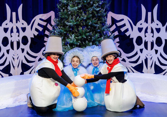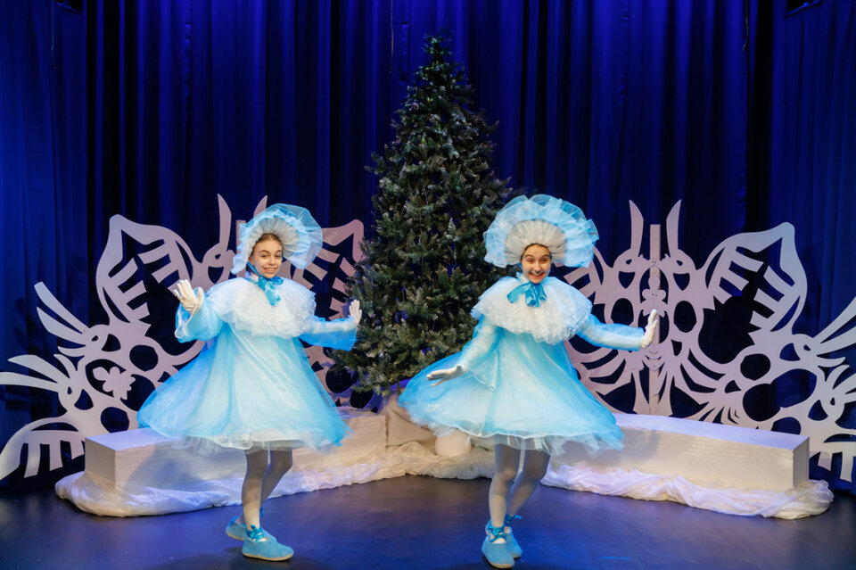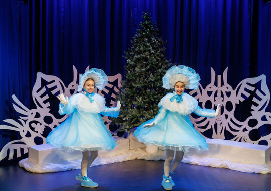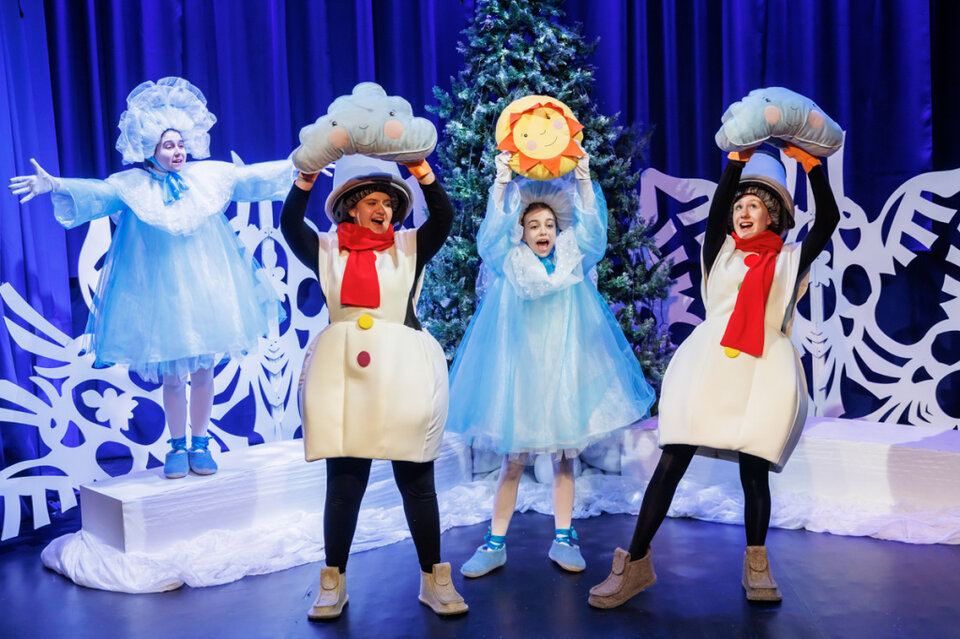 Едва переступив порог театра, зрители окажутся в таинственной синеве снежного дома и будут окружены заботой юных артистов театра. В ожидании спектакля маленькие гости смогут взять в руки карандаши и раскраски или сыграть на музыкальных инструментах: извлечь звук из звонкого треугольника, ударить в бубен или развеселить всех звуком громкой трещотки.