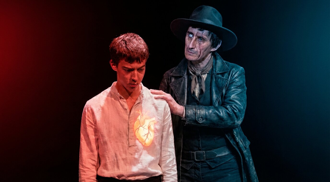 Постановка соединяет живую актёрскую игру, театр теней и визуальные проекции, создавая атмосферу мистического Шварцвальда.