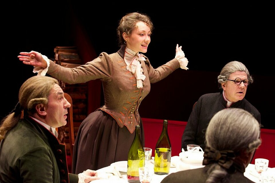 И вот по этим законам за трапезой течет медленный необязательный разговор — о необходимости женщин и счастье жить без них, о том, почему шатаются стулья и каким образом французы подняли в небо воздушный шар. Канта вообще беспокоит здоровье. Мужской разговор прерывает звонок в дверь — это девушка Фоби из Шотландии, племянница местного Джозефа Грина, приятеля Канта.