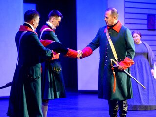 История любви Петра Гринёва и Маши Мироновой во времена «бессмысленного и беспощадного» Пугачевского бунта. Кроме любви в спектакле «Капитанская дочка» по произведению А. С. Пушкина поднимаются и другие темы: верность, честь, совесть, долг русского офицера – и дают почву для размышлений о том, может ли человек сохранить достоинство, если мир вокруг стремительно меняется.