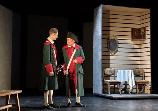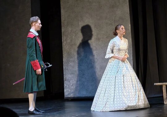 История любви Петра Гринёва и Маши Мироновой во времена «бессмысленного и беспощадного» Пугачевского бунта. Кроме любви в спектакле «Капитанская дочка» по произведению А. С. Пушкина поднимаются и другие темы: верность, честь, совесть, долг русского офицера – и дают почву для размышлений о том, может ли человек сохранить достоинство, если мир вокруг стремительно меняется.