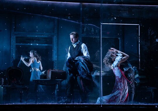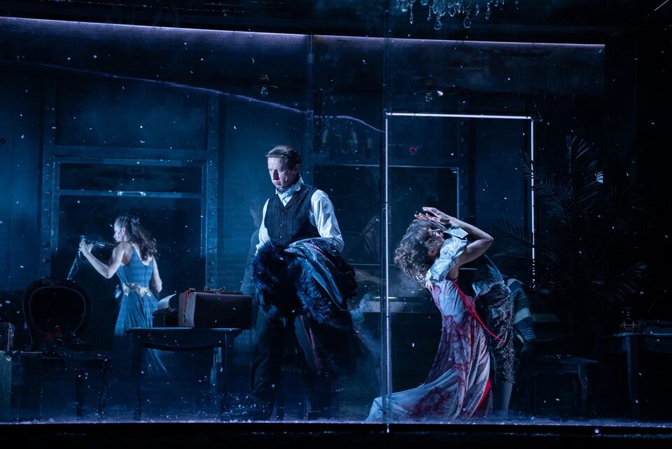 Она умирает задолго до того, как упала под поезд. Ещё до встречи с Вронским. И именно несущийся поезд авторы спектакля выбирают местом действия истории. Не важно — куда, главное — откуда. От неслучившейся жизни, туда, где лучше сгореть, чем тлеть.