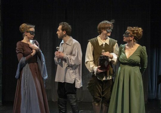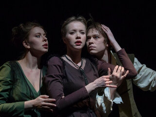 Сложность и необычность режиссёрских решений иногда кроется в их простоте, игровой природе действия. Авторы постановки искали грани между условностью маски и подлинным переживанием, стремились к музыкальности слов.