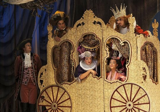 Сказка Шарля Перро — щедрый подарок, яркий, музыкальный, веселый, в живописных декорациях Максима Обрезкова, непременно порадует юных зрителей.