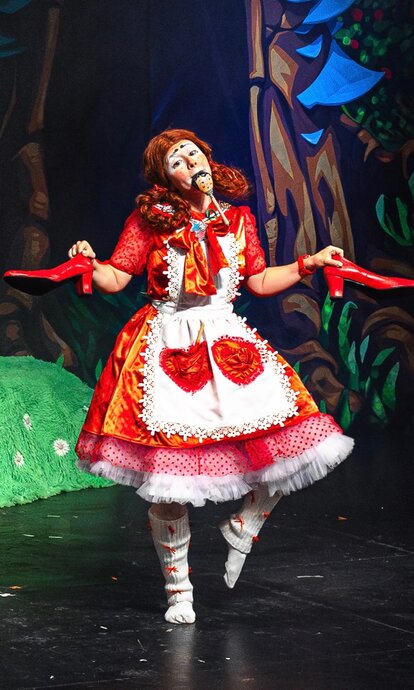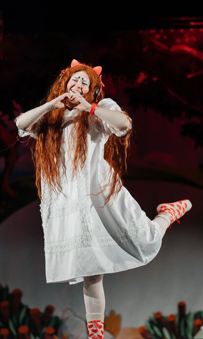Музыка группы The Hatters задаёт яркий ритм приключениям, а зрители оказываются вовлечёнными в интерактивные сцены спектакля.