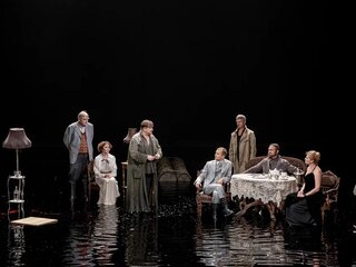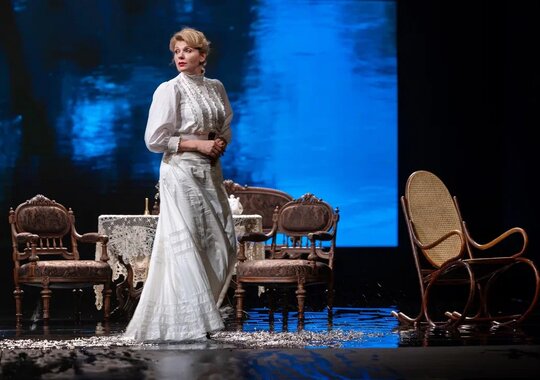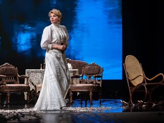 Имя Островского — одно из самых постоянных на афише Театра им. Вл. Маяковского: «Лес» станет восьмым спектаклем великого драматурга в текущем репертуаре Маяковки. Первой же постановкой по Островскому на этой сцене была комедия «Доходное место», которую главный режиссер Театра Революции (ныне Театра Маяковского) Вс. Мейерхольд осуществил ровно 100 лет назад — премьера состоялась в 1923 году. Спектакль стал настоящей «классикой» театра ХХ века.