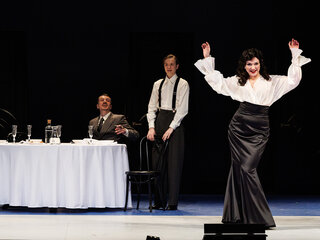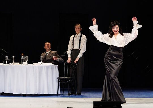 Владимир Драгунов: «Елена Исаева написала пьесу по мотивам прозы Славы Сэ. В ней ощутим дух вольности, импровизации, экспромта. Мы работаем с драматургическим текстом, который не сдерживает наше творчество никакими канонами, дает возможность сочинять в процессе репетиций: рождается реплика, продиктованная определенными обстоятельствами, — записываем и сохраняем. Счастье, когда материал нравится и отзывается, потому что в нем есть внутренняя свобода.