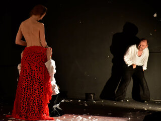 Спектакль завораживает с первой минуты и не отпускает до конца действа — три актера — двое мужчин и женщина проживают на сцене и трагедию Сальери и драму Каменного гостя.