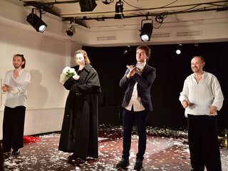 Накал страстей нарастает из истории к истории, вовлекая зрителя в знакомое пушкинское повествование, но открывая новые грани образов героев. Лаконичность постановки, контрастные костюмы, плавное перетекание историй друг в друга — все это погружает в особую атмосферу спектакля.