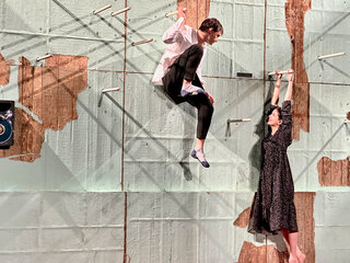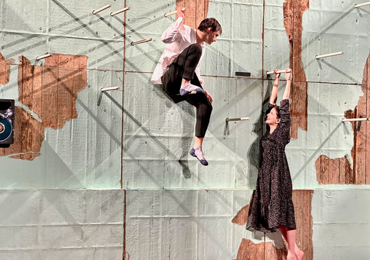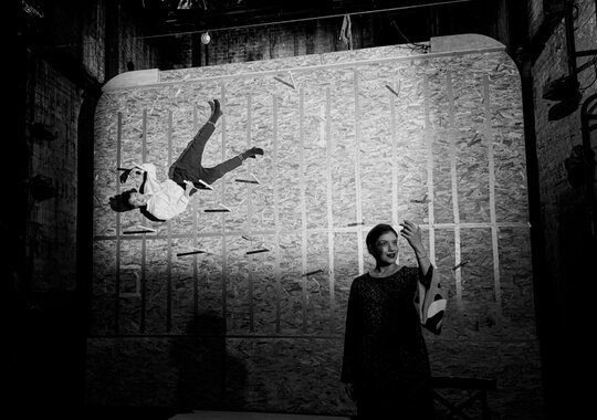 Владислав Наставшев: «Главный вопрос для меня: что происходит с Митей? Катя действительно существует или все события происходят во внутреннем мире героя? А если Катя существует? Она играет спектакль? Она репетирует? Готовит роль? Кто она? Актриса или сила судьбы? Человек или нет? Митю играет молодой артист Андрей Мартынов, а Катю — Аня Чиповская. Между ними поколенческая разница, и это меняет расстановку сил в спектакле. Аня играет некую стихию, необратимость, перед которой человек бессилен».