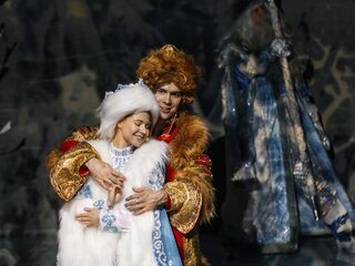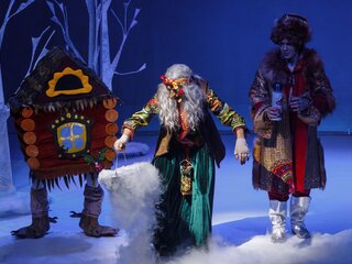 Театрализованное шоу, новогодняя сказка с песнями и танцами «Морозко» Гостей встречает Дед Мороз и Снегурочка.