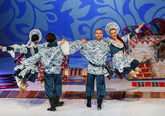 Всех ожидает яркое и красочное новогоднее представление, украшает который ансамбль народных танцев.