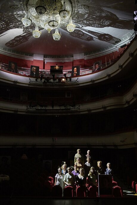 Людмила Петрушевская — без сомнения, ключевая фигура современной российской словесности, а «Московский хор» — одна из самых масштабных пьес автора. В центре внимания три поколения одной некогда большой, дружной и счастливой семьи. Множество судеб, которые сливаются в многоголосие, в хор людей, которые слишком много пережили и теперь стараются начать жить заново. Режиссёр Никита Кобелев вместе с художником Моникой Пормале (Латвия) выстраивают особенное пространство, разместив зрителей на сцене, а действие спектакля переместив в исторический зал Театра Маяковского, стены и кресла которого хранят память этого места и тех людей, которые сюда приходили.