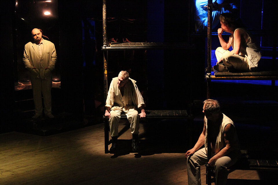 «Спектакль Валерия Беляковича поднимает реализм до метафорических обобщений, мистических прозрений и эмоциональных вершин. Он наполнен тоской, безрассудной яростью, ослепительным юмором и пронзительной нежностью. Русские пляски и песни перемежаются с жестокими драками, музыка трагического Вангелиса — с роковыми стилизациями народных мелодий. Текст Горького становится поводом для проникновения в суть явления жизни «на дне» общества, на обочине жизни. Цельное зрелище, идущее на одном дыхании и объединенное единым порывом отчаявшейся души к свету, ставит артистичных босяков в экстремальную ситуацию. Выбирающие свет выбирают гибель».