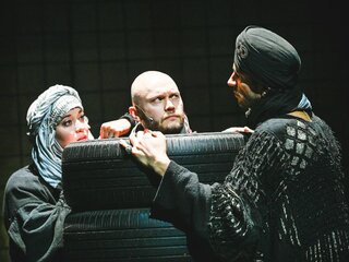 Как людям с разными взглядами на жизнь найти общий язык? Что происходит, когда в одном месте встречаются интересы представителей разных культур, религий и традиций? Может, иногда главное не в том, в какого Бога верит человек, а в самой способности верить? Пётр Шерешевский создаёт экспрессивный спектакль о толерантности и религиозных противоречиях в Иерусалиме XII века, в эпоху Третьего крестового похода. Здесь правит султан Саладин — гроза рыцарей-храмовников. Патриарх Иерусалимский поддерживает с ним шаткий мир, но втайне преследует собственные интересы. Торговлей с Персией занят еврейский купец Натан. А воинственный христианин, пришедший на эту землю, чтобы её завоевать, спасает из пожара дочь Натана, молодую еврейку, что по тем временам кажется невероятным... Спектакль «Натан Мудрый» — это попытка заглянуть в глубь истории, чтобы увидеть отражение современных мировых процессов и найти ответ на вопросы: как научиться принимать друг друга? Возможно ли понять человека иной веры и по-настоящему сблизиться с ним? А что, если этот человек — часть твоей семьи? Пьеса «Натан Мудрый» (1779) — последняя драма немецкого классика Готхольда Эфраима Лессинга (1729–1781). Драматург не был уверен, что пьеса о возможности мирного сосуществования трёх конфессий — иудеев, мусульман и христиан — будет поставлена, поскольку она была написана в острой полемике с гамбургским богословом. В течение веков пьесу неоднократно снимали с афиши. В 1933 году в Германии постановка этой драмы была запрещена. Фильм 1923 года по этой пьесе подвергался цензуре: негативы пытались уничтожить, а в Варшаве фильм просто убрали из проката. Интересно, что после Второй мировой войны немецкие театры вновь открывались именно постановкой по «Натану Мудрому». В СССР пьеса была опубликована лишь в 1953 году, но она до сих пор считается одной из литературных вершин в борьбе с антисемитизмом.