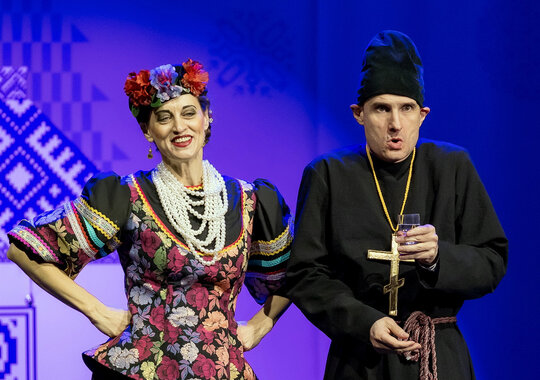 Спектакль «Ночь перед Рождеством» перенесет зрителей в фантастическую историю, где симпатичный, но сильно обиженный людьми Черт мстит им: крадет месяц. И прежде всего удалому кузнецу Вакуле. А Вакула ради любви своенравной красавицы Оксаны готов оседлать Черта и слетать к самой Царице за черевичками.