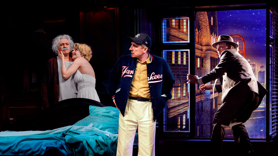 Представьте, что в 1954 году в номере нью-йоркского отеля совершенно случайно встретились всемирно известные актриса, спортсмен, сенатор и ученый. Прототипы этих персонажей узнаются сразу, хотя и не называются автором. Всю пьесу нам придется стоять на пороге доверия к происходящему. Вероятность этой встречи стремится к нулю, однако для нее были причины и о ней ходят слухи.