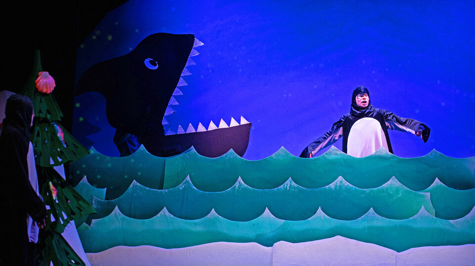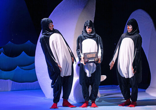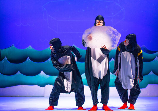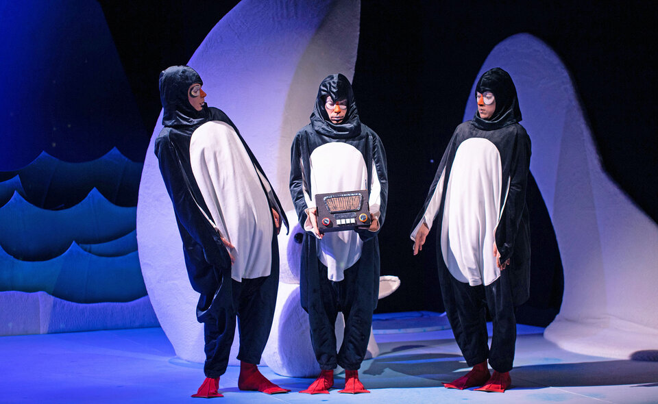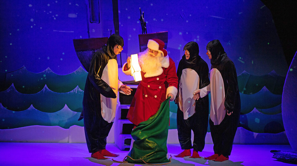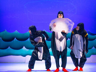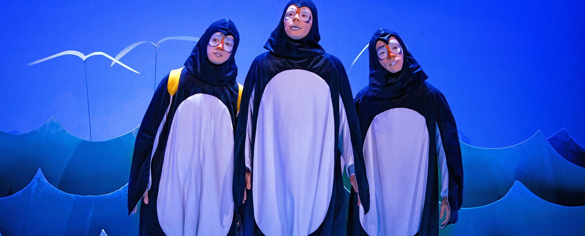 Будет ли похож праздник пингвинов на наш с вами Новый год? И что можно раздобыть на острове, где нет ничего, кроме снега и льда? В этой зимней сказке, как и в других популярных спектаклях режиссера Ольги Сидоркевич, эксцентрика сочетается с добротой и чуткостью, а озорство и интерактивные эпизоды явно понравятся не только пингвинам, но и зрителям.