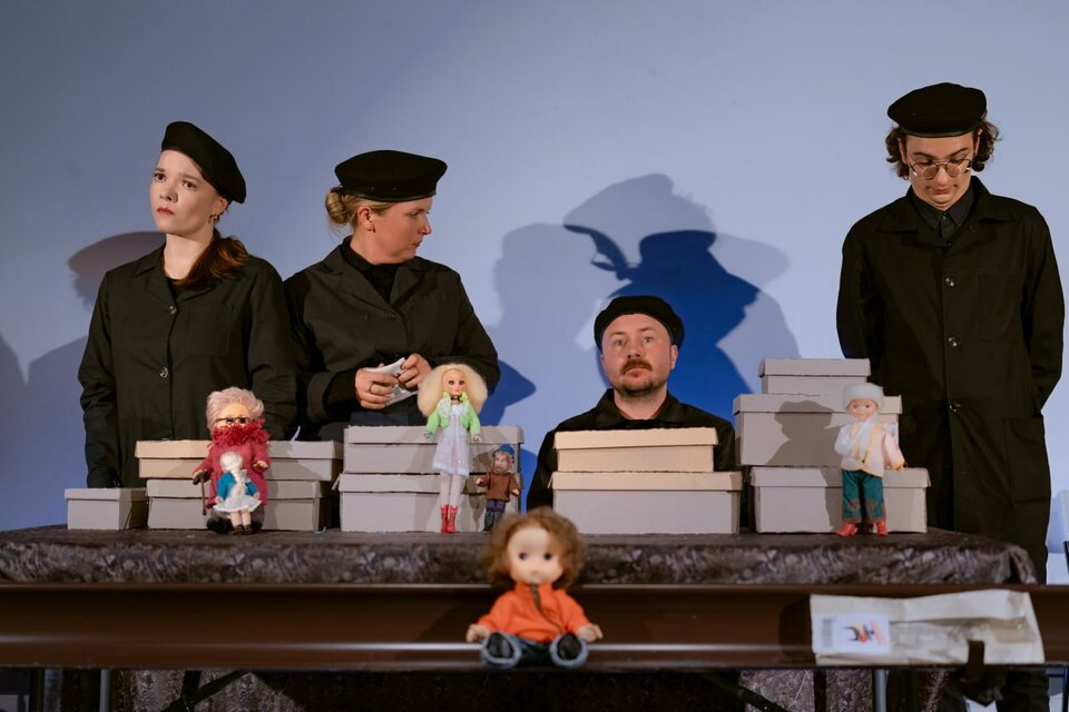 На сцене — четверо работников фабрики игрушек. Они создают перед зрителями историю с элементами кукольного театра о человеке, который решил просто лечь в канаву, чтобы на минуту перестать бежать, работать, доказывать, успевать. Историю о нас самих — тех, кто тоже иногда мечтает хоть ненадолго исчезнуть из суеты.