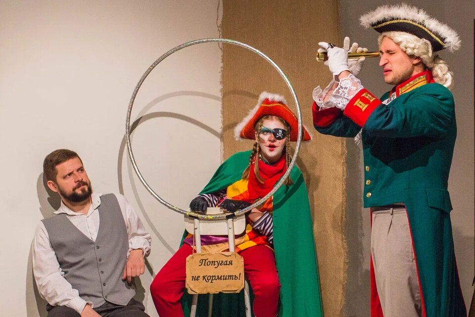 Сложно предугадать, из какой двери выпрыгнут пираты, как здесь спрячется капитан Флинт и найдут ли они в итоге заветный клад. Условные декорации и близость актеров буквально на расстоянии вытянутой руки создают у маленьких театралов иллюзию ими самими придуманной, нарисованной и переживаемой истории. Завершается интерактивное «чтение» непременно чаепитием со сладостями в компании героев — сокровища найдены, а значит, есть повод пировать. В стороне от застолья остается лишь бедная птичка, помеченная табличкой «попугая не кормить».
