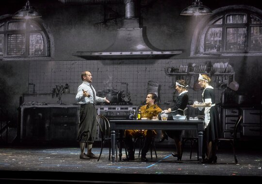 В основе спектакля девять сцен из произведения Б. Брехта «Страх и отчаяние в Третьей империи». Режиссёр связывает сцены в единую историческую канву, соединяя их зонгами-интермедиями на мотив «Бараньего марша» Брехта.