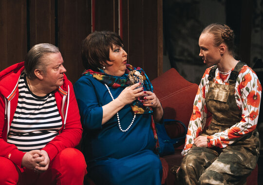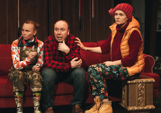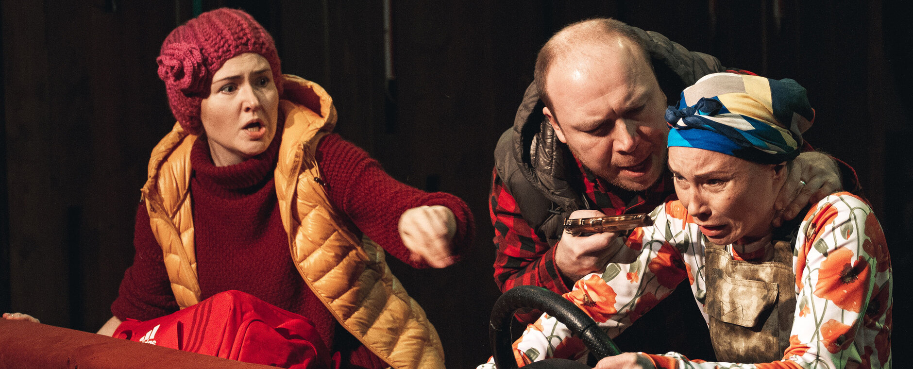 Две подруги, Надя и Маша, актрисы театра, отправились в выходной день на прогулку в лес. Вместо грибов они обнаружили мужчину (Бориса), лежащего без сознания. При нем была сумка, набитая деньгами. Казалось бы, дальше действие пойдет по накатанному детективному сюжету – больница, полиция, дознание. Но пришедший в себя Борис обвиняет своих спасительниц в похищении его жены. Сюжет развивается быстро, обрастая новыми гранями, словно снежный ком. Но не зря Надя и Маша –актрисы. В спектакле много хорошего тонкого юмора. Действие на сцене развивается стремительно и ярко, в лучших традициях классической комедии положений.