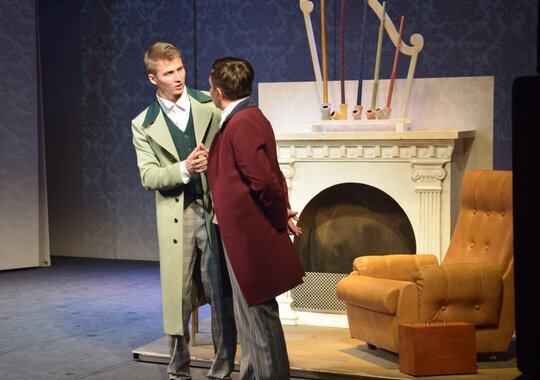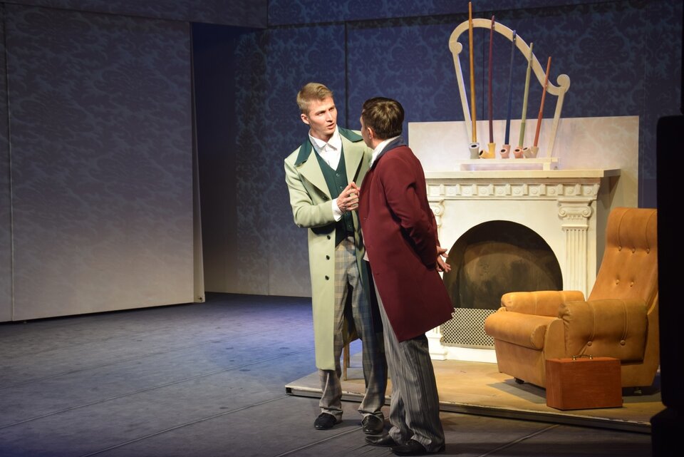 Итак... В уездный город приезжает молодой авантюрист, коллежский советник Чичиков, с целью провернуть хитроумную аферу за счёт душ, существующих только на бумаге т.е. скупать у здешних помещиков мертвые крестьянские души и занять в обществе высокий статус как владельца многих крестьян. Чичиков ловок на обман, обходителен, может вовремя польстить, умеет поддержать беседу на любую тему, найти подход к каждому человеку, и легко становится желанным гостем у каждого... тем не менее, в конце спектакля, оказавшись на волоске от разоблачения, вынужден спешно покинуть город.