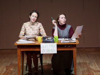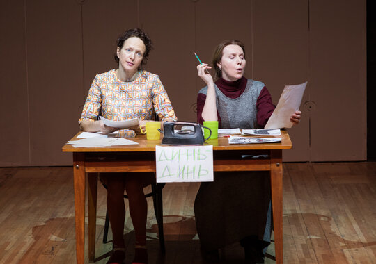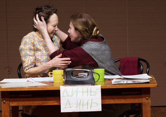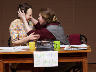 Пьеса, разыгранная Еленой Морозовой и Дианой Рахимовой в свободном, ласковом, смешливом духе,— это воспоминания (школьные сочинения) девочки о своих разговорах с матерью, фиксирующих в равной степени раздражение и любовь, усталость и радость.
