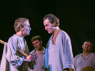 Новый спектакль повествует об одном из самых противоречивых героев российской истории — Емельяне Пугачеве. Режиссер спектакля Михаил Мизюков следует тексту Сергея Есенина и обрисовывает не только самого Пугачёва, но и представляет ярко и объективно образы его сподвижников. Кроме того, спектакль будет динамичным, герои сменяют друг друга в каждой сцене. Ни один персонаж не появляется дважды, кроме... Емельяна Пугачева.