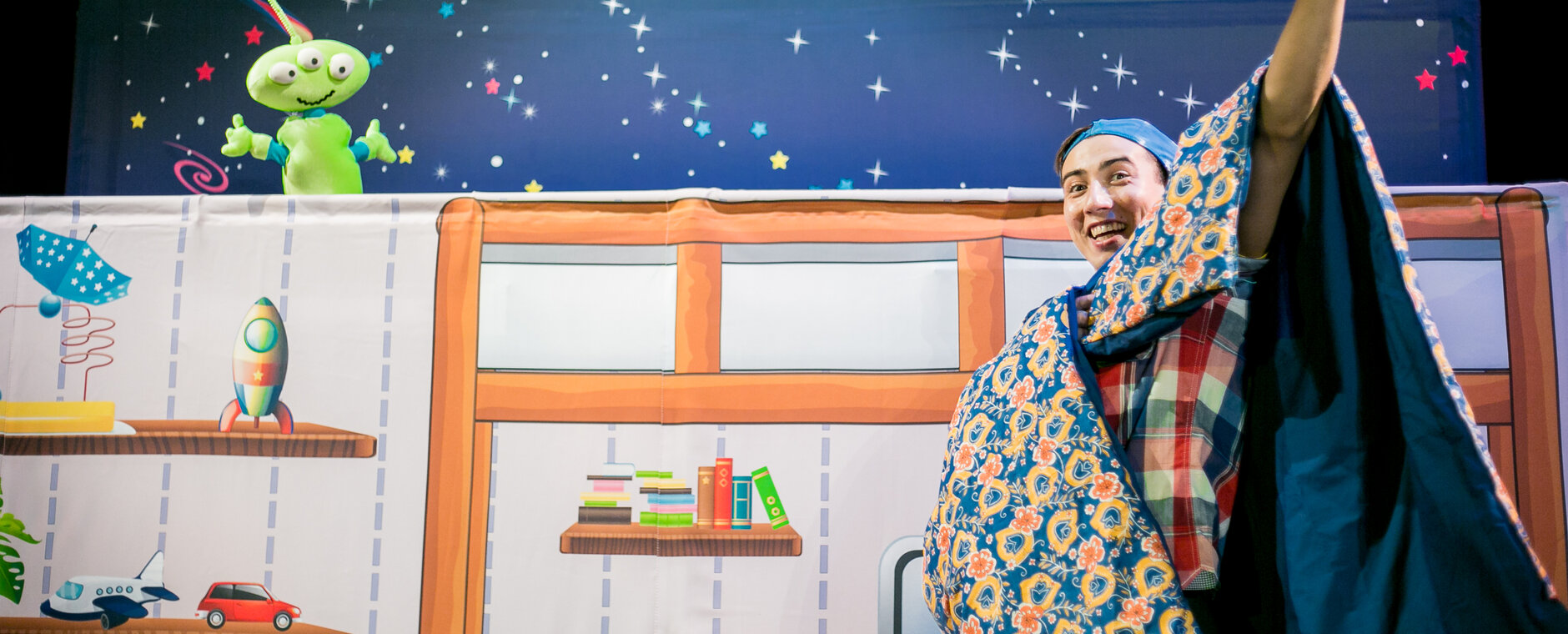 Интерактивный, познавательный спектакль путешествие! На сигнал из передатчика мальчика Вовки, мечтающим стать космонавтом, неожиданно для него самого прилетели инопланетяне с просьбой о помощи!.... Вместе с ними Вовка отправляется в увлекательное путешествие в космос, где он с ребятами узнает планеты, сразится с черной дырой и спасет Солнечную систему!