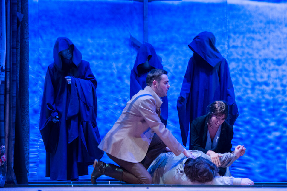 Если театр начинается с вешалки, то спектакль — с декораций. Главное в преступлении — это мотив и орудие: акцентный топор сразу задает настроение спектаклю. Здесь всё по-настоящему, поэтому интрига сохраняется на протяжении спектакля. Становится интересно, как в школьные годы; и наравне с этим, достаточно жутко, поскольку все действия теперь проходят через опыт и осознанность взрослых лет.