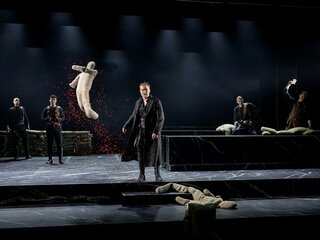 В новой сценической интерпретации пьесы режиссер Евгений Закиров и художница Евгения Шутина помещают героев Шиллера в условное пространство, одновременно напоминающее и университетскую кафедру, и залы старого замка, и грозовое небо, которое еще немного и разверзнется настоящими молниями над вставшими на путь зла и жестокости братьями Мор.