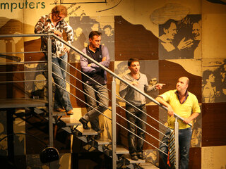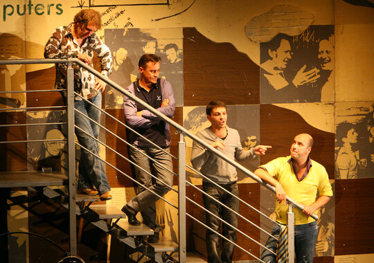Начав работать над этим спектаклем, мы очень быстро поняли, что вообще не знаем, о чем он должен быть… Никакие мысли о сюжете или героях в головы не приходили, поэтому мы сидели и разговаривали. Просто разговаривали о вещах, которые волнуют мужчин среднего возраста, а было нам тогда, как раз, по 35-38 лет.