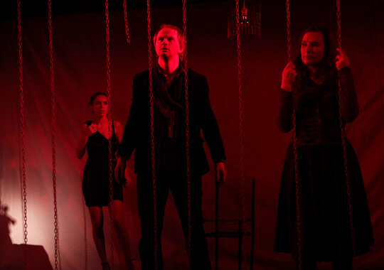 Спектакль по пьесе Сартра «За закрытыми дверями» обрел современные черты, но при этом не растерял ни напряженности, ни философской подоплеки...